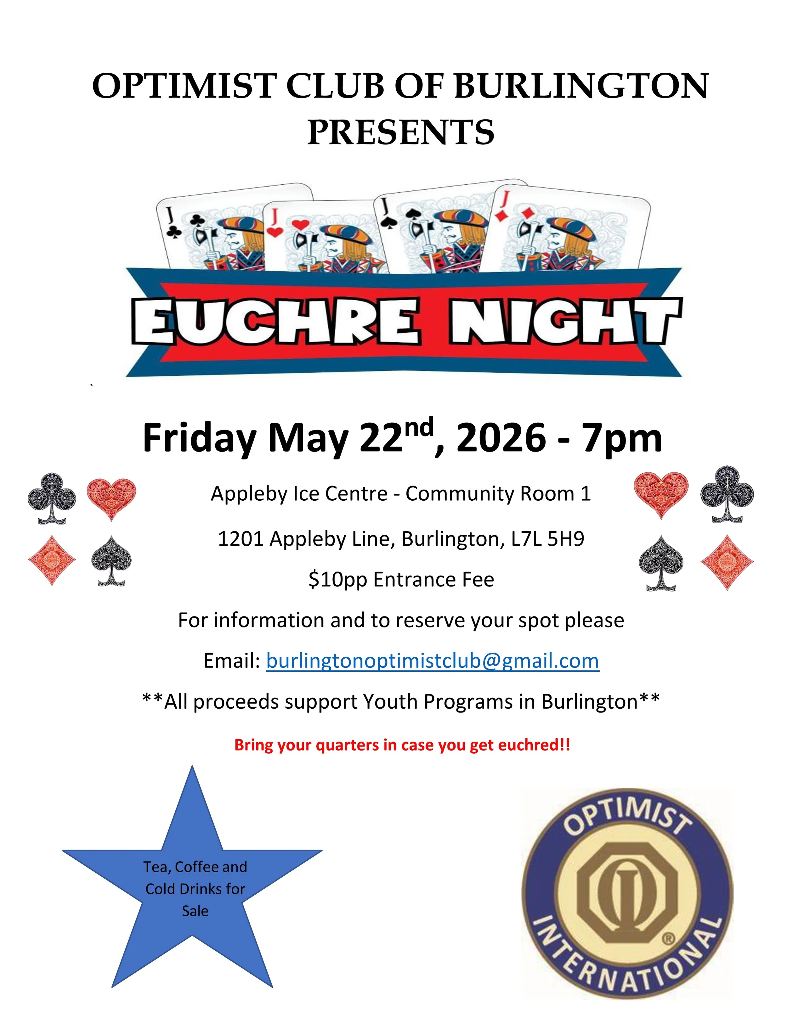 Please let us know you are coming by emailing us at www.optimistclubofburlington.com.